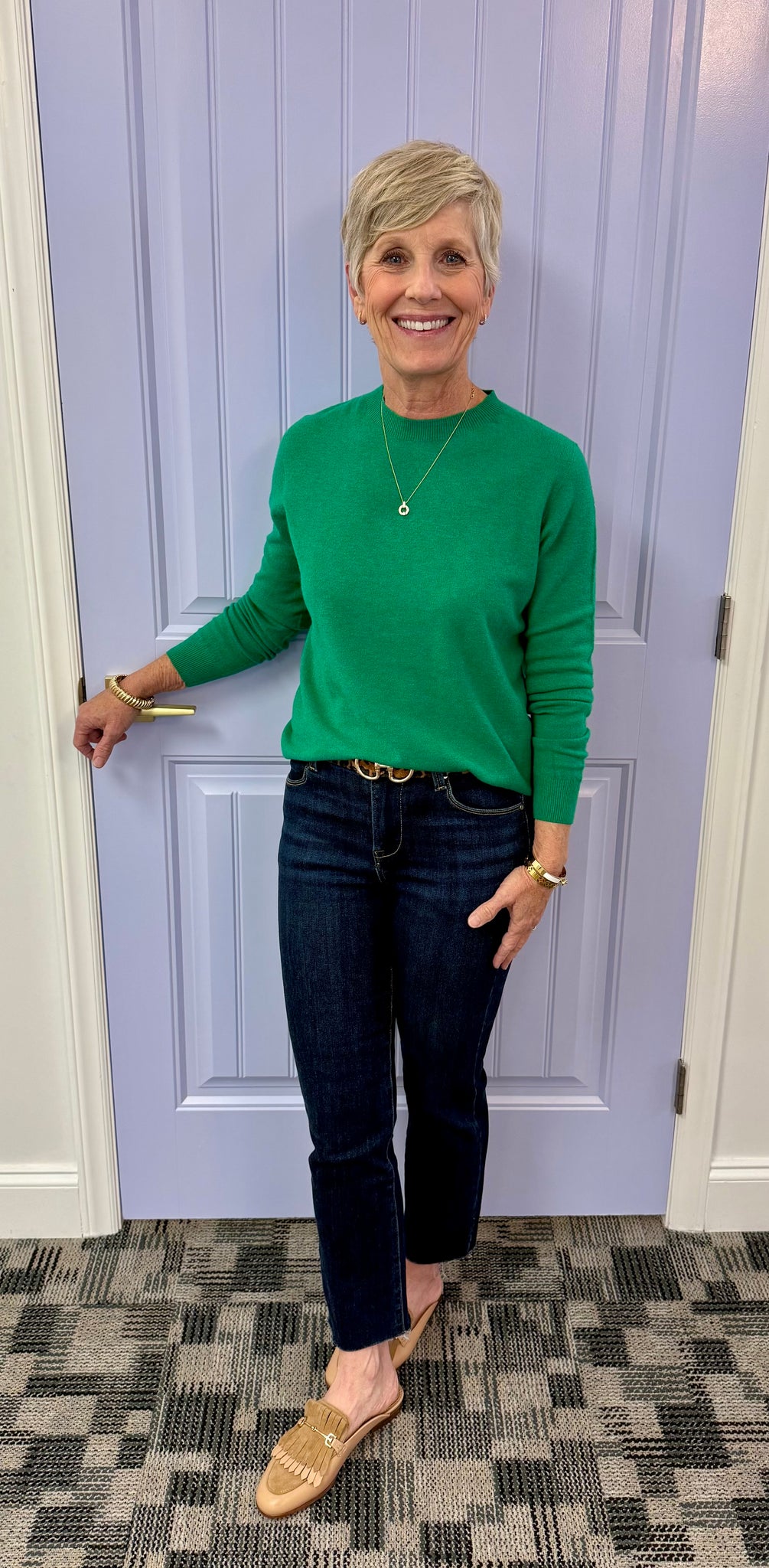 The Baxter is a soft, classic crew neck sweater in the color Green.
