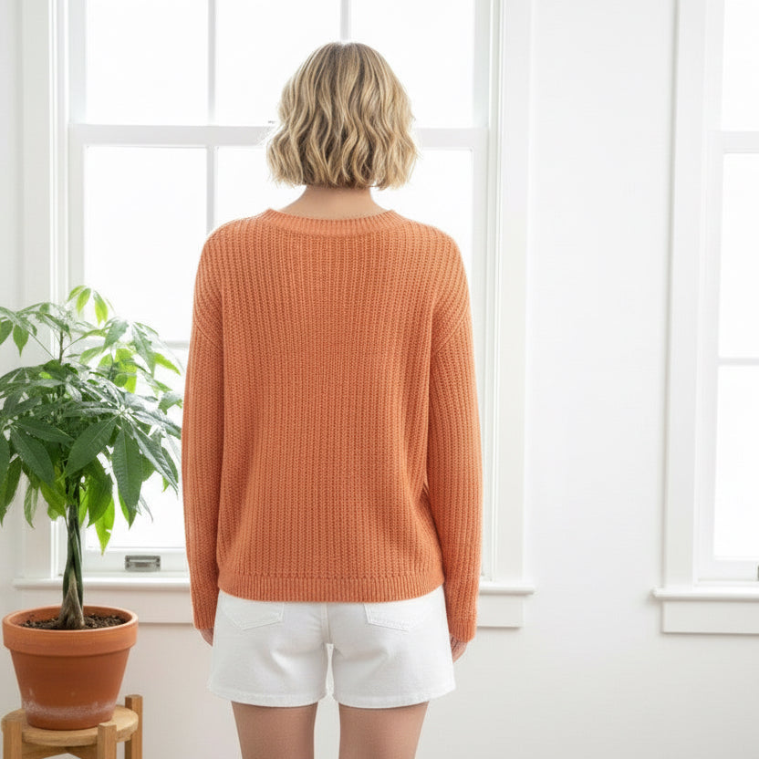 The Collins is a lightweight crew neck summer sweater in the color orange.