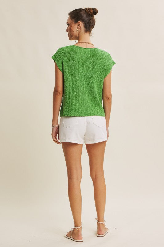 Crafted from 100% breathable cotton with a textured slub finish, it offers an easy, relaxed silhouette with dolman-style short sleeves and a split neckline.