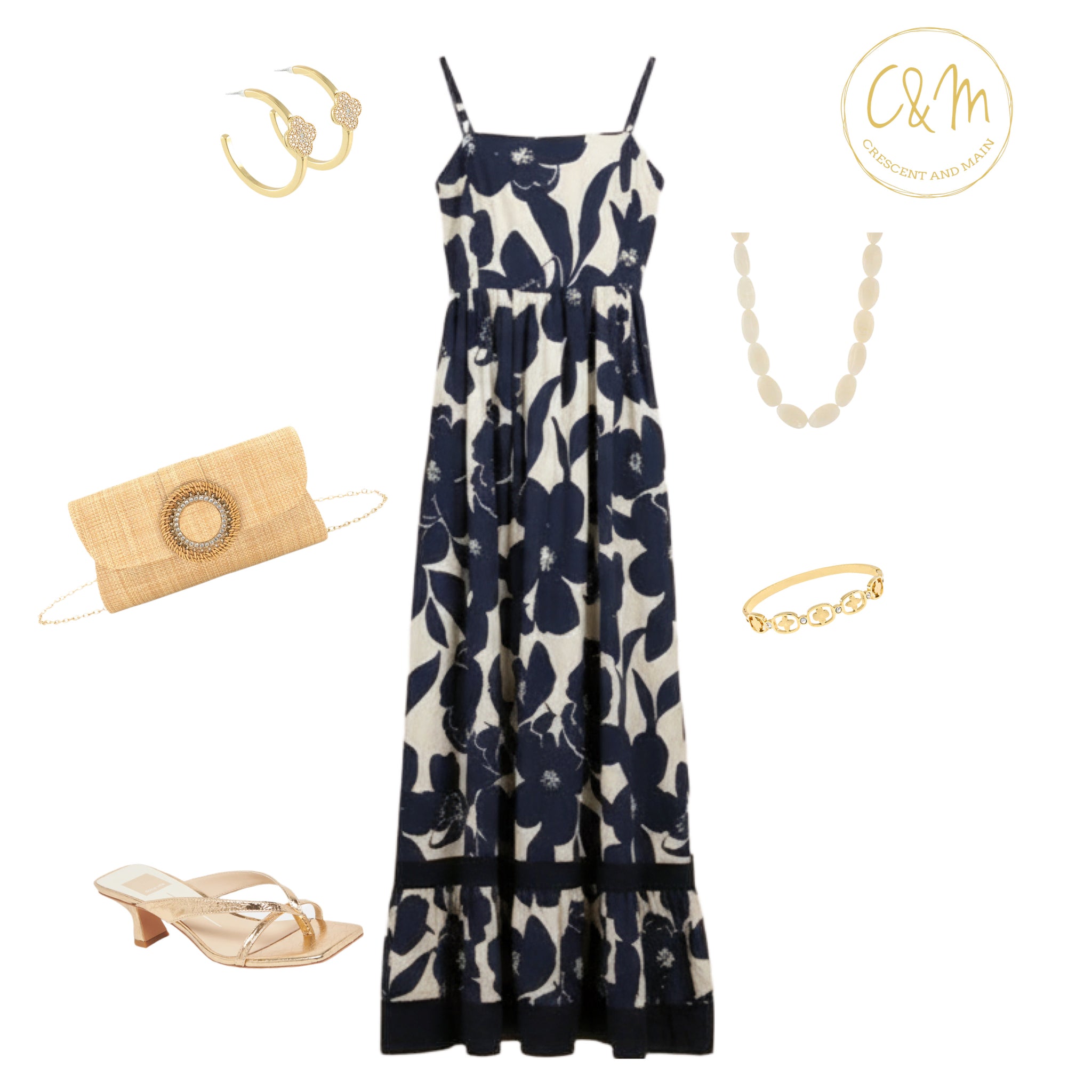 The Violette is a cotton floral maxi dress in green and white with spaghetti straps. Perfect for a summer day.