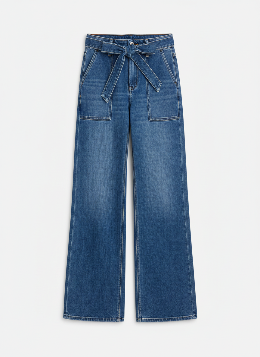 The Cassandra is a tie patch pocket wide leg jean. Full length 32 inch inseam.