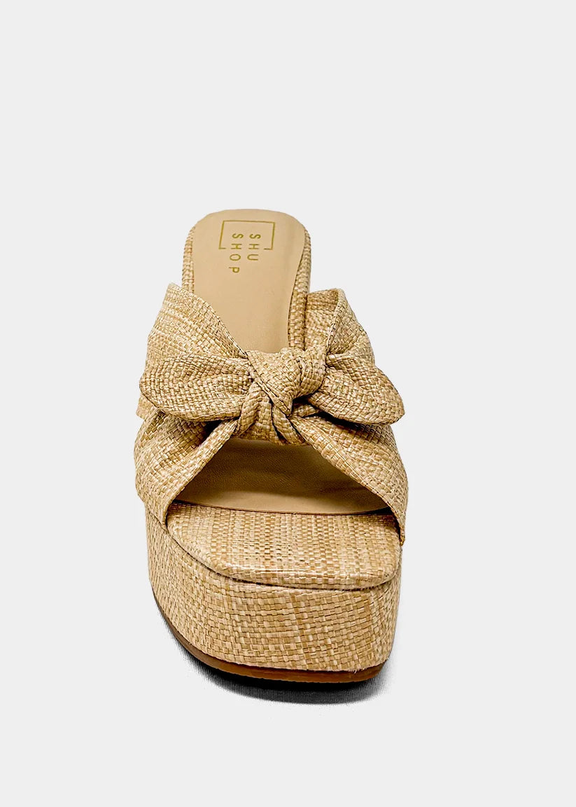 This woven platform wedge is the definition of summer sophistication. Designed with a wide crossover upper and soft knot detail, it creates a flattering silhouette while keeping the look relaxed and elevated. The sculpted wedge base gives you confident height with everyday comfort, making it perfect for warm-weather events, sunset dinners, or elevated daytime styling. Lightweight, versatile, and easy to wear this is the wedge you’ll reach for all season.